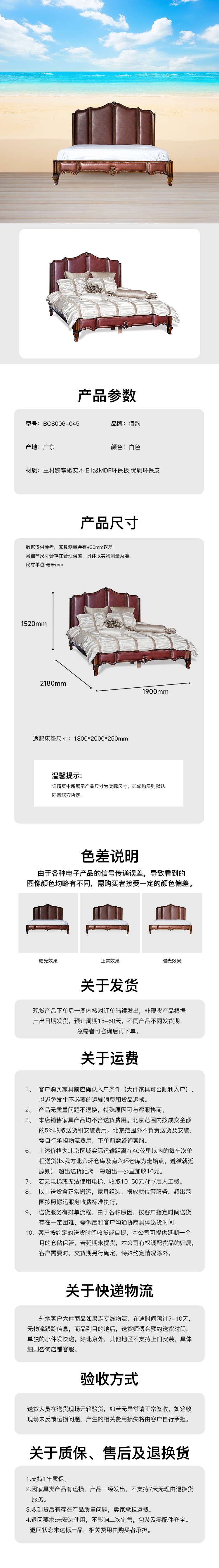 弧背皮床,主材为美国进口鹅掌楸实木,床身选用美国最流行的优质环保皮,增加了床头的舒适性,易于打理。床头的高度适合公寓户型,无床尾解决了视觉问题,而且床宽度的最小化更能适合小面积卧室的需要。