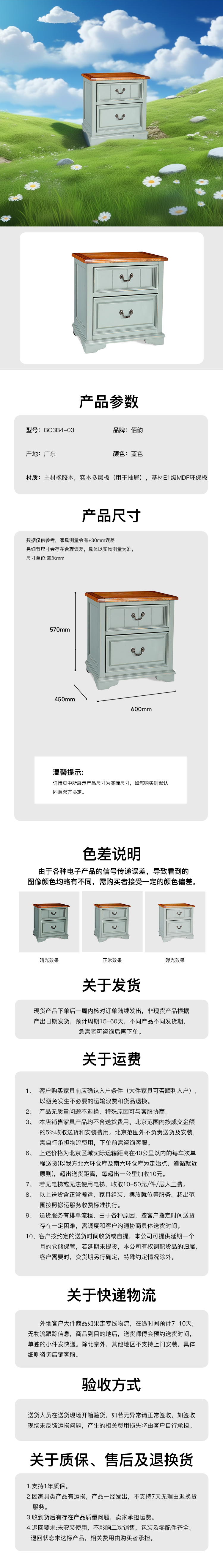 床头柜-蜜蜂色/法国蓝主材白蜡木实木 BC3B4-03