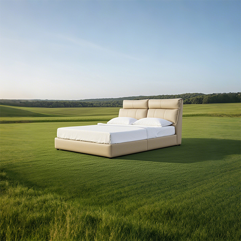 主材:储物齐边床 进口头层黄牛皮(接触面) 夹板:欧盟E1级环保标准