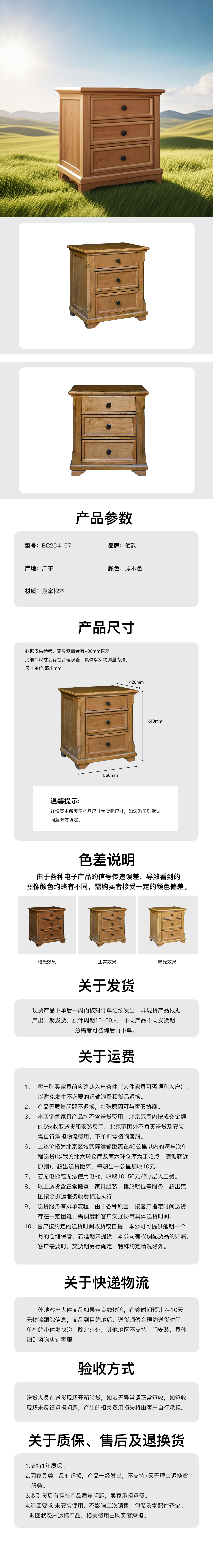 主材:*主材鹅掌楸木 *实木多层板(用于抽屉) *基材E1级MDF环保板