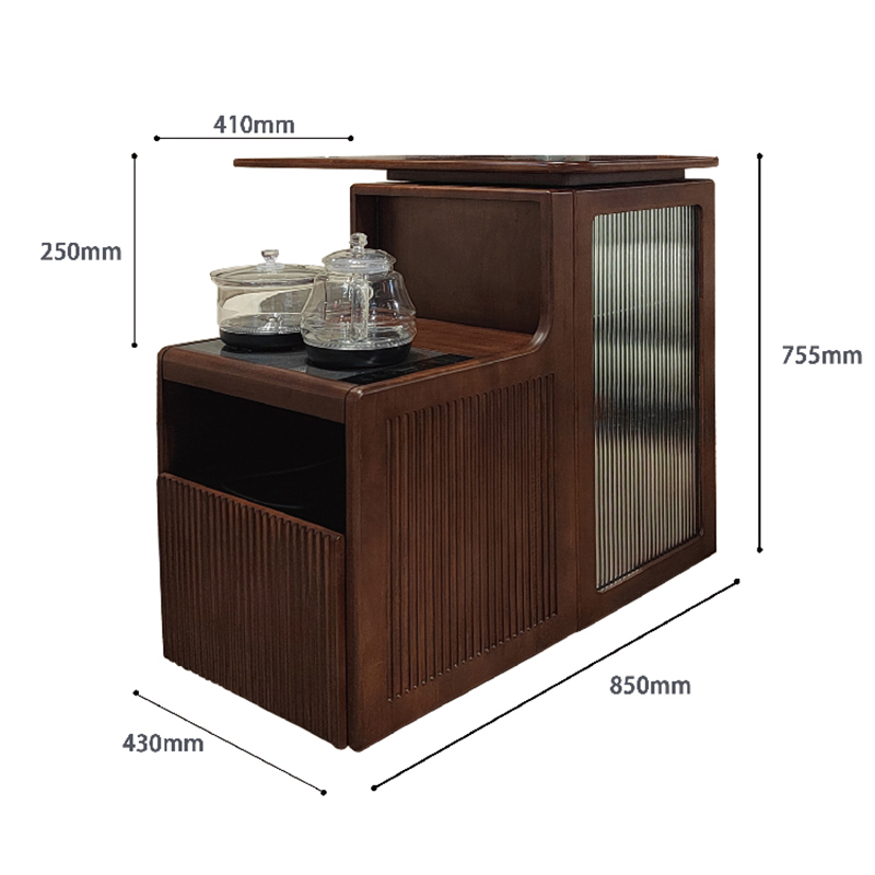 茶水柜胡桃色橡胶木纯实木