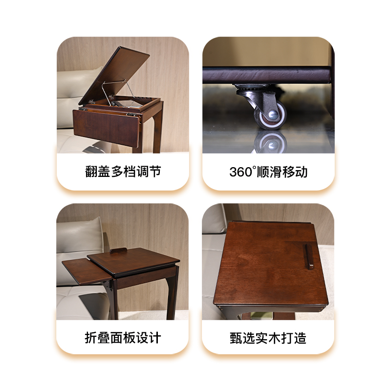 移动翻板边几胡桃色橡胶木实木