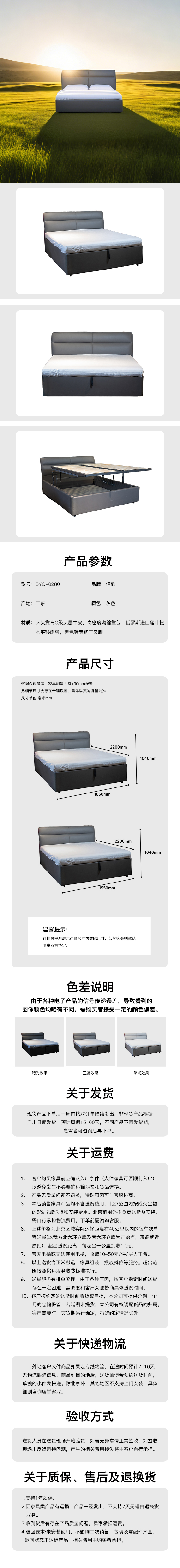 商品规格:1850mm*2200mm*1040mm 床尾高420mmmm