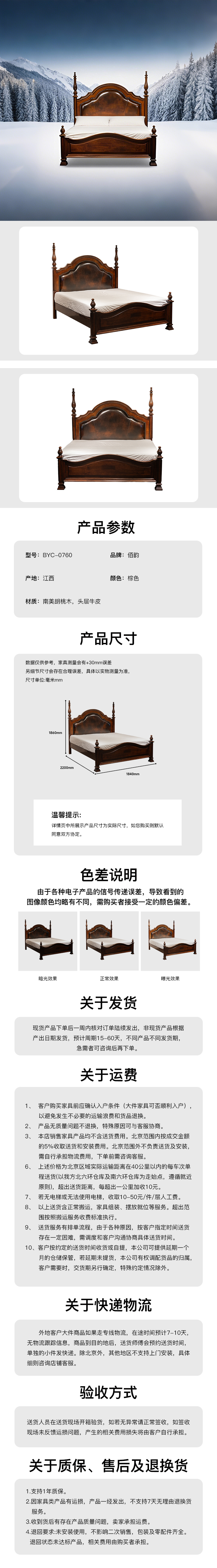 牛皮床南美胡桃木,头层牛皮BYC-0760