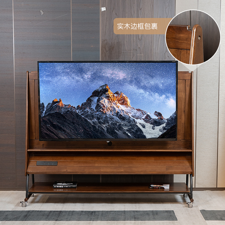 移动电视机架小款-胡桃色橡胶木BYG-0940