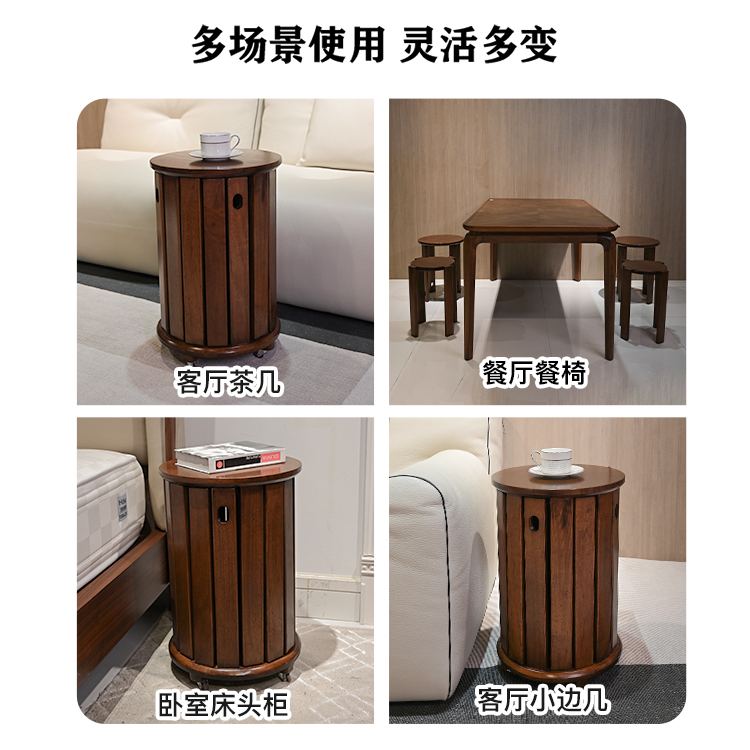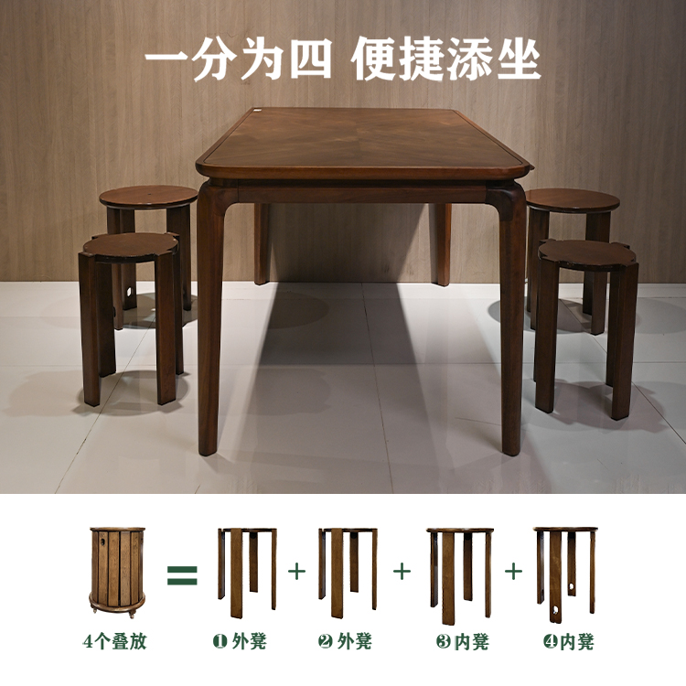 滑轮叠叠凳火星岩色橡胶木全实木BYY-0365