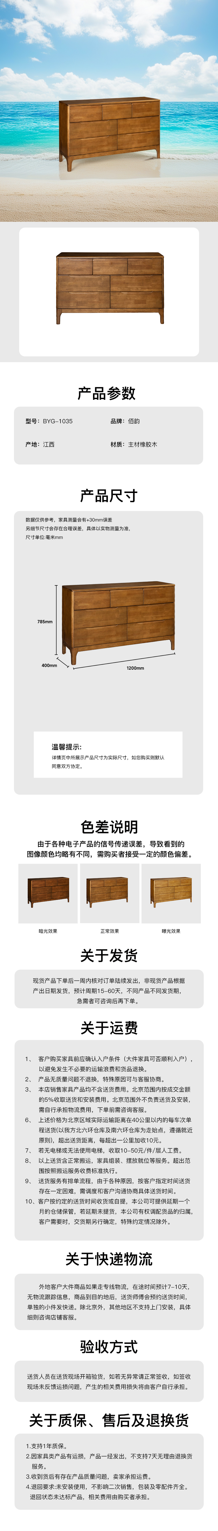 七斗柜(胡桃色)主材橡胶木 BYG-1035