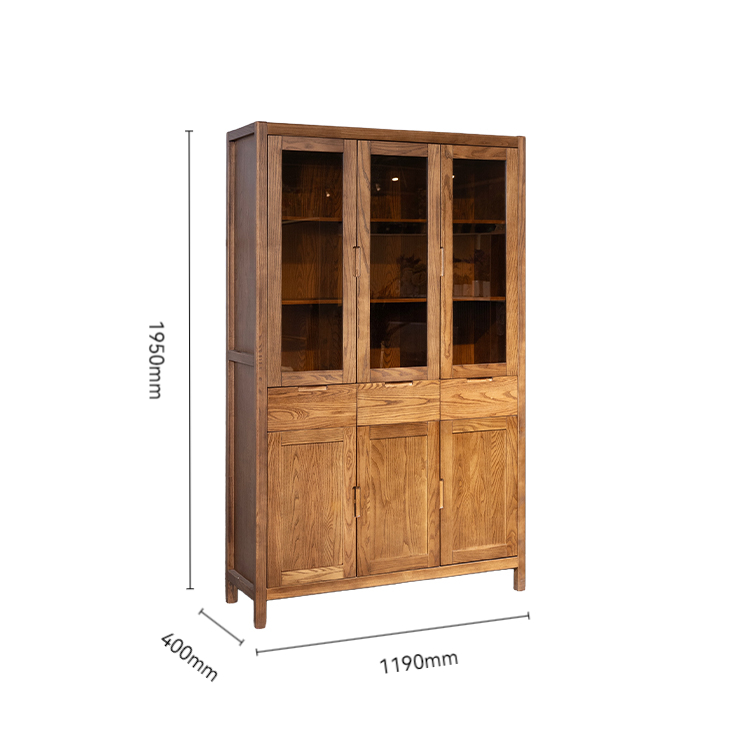 三门书柜(胡桃色)主材白蜡木 BYG-1175