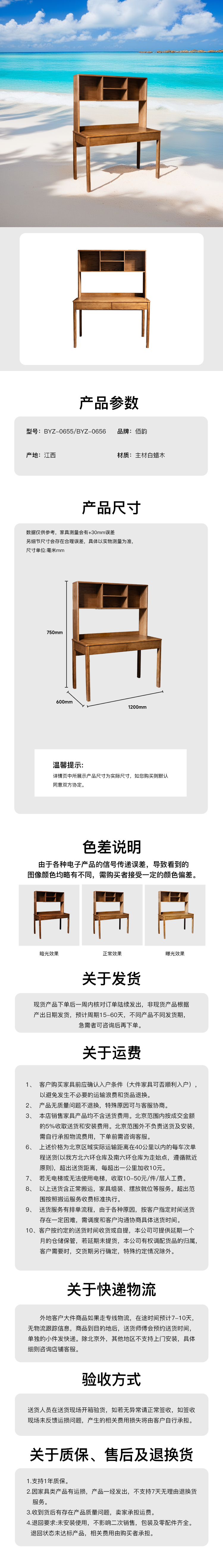 书桌-下柜-胡桃色主材白蜡木 BYZ-0655