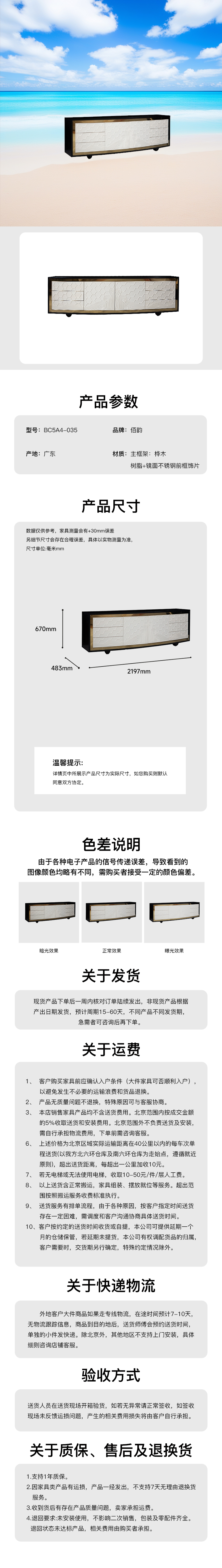 主材:主框架:桦木 辅料:杂木+MDF 装饰面:树脂+镜面不锈钢前框饰片