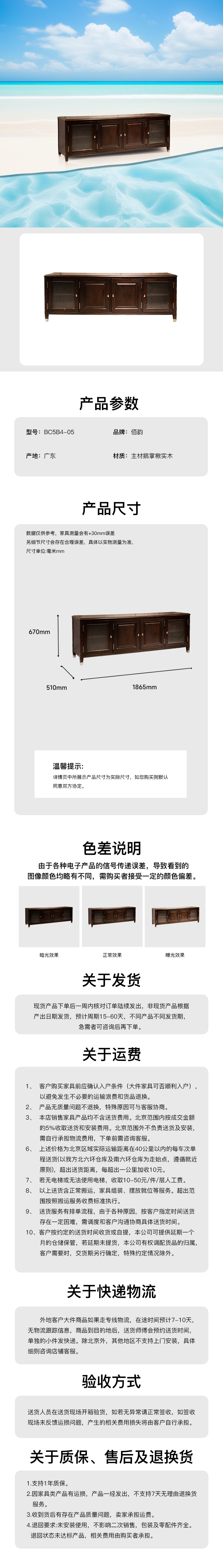 主材:*主材鹅掌楸实木 *MDF环保板(P2级美国出口标准) *超白浪纹钢化玻璃 *锌合金镀镍合页、拉手及脚套