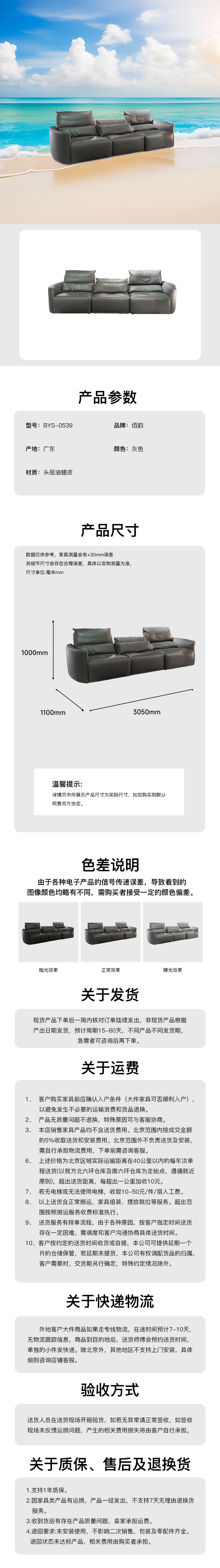 头层油蜡皮三人位沙发头层油蜡皮 BYS-0539