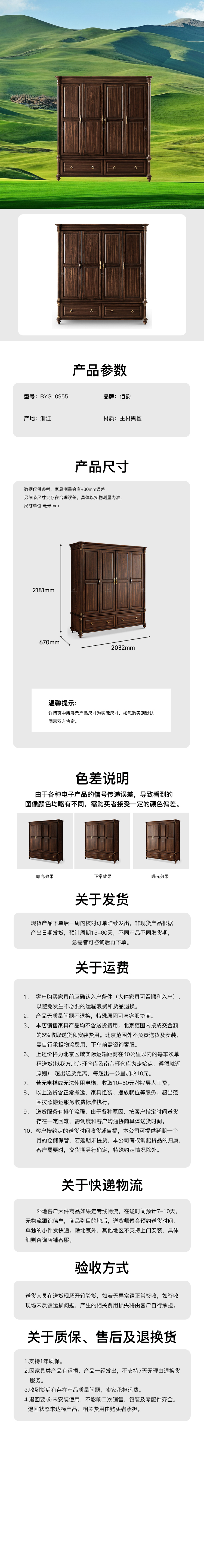 四门衣柜黑檀 BYG-0955