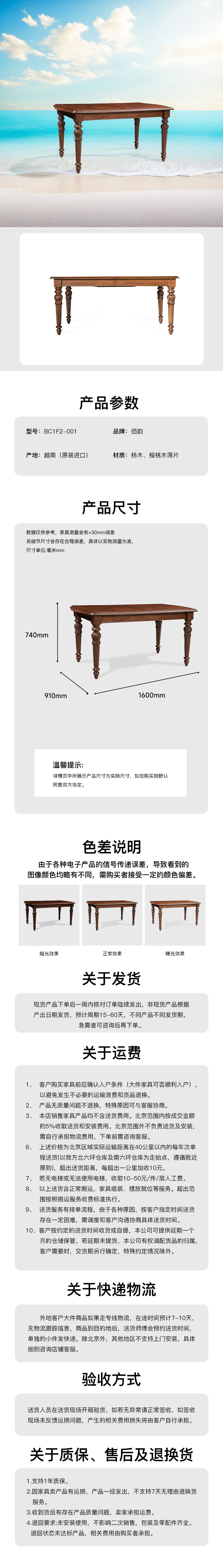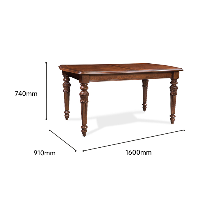 原装进口产品,英式风格,餐桌采用杨木主材,桌面采用珍贵樱桃木薄片,在传统矩形的基础上,将边缘做曲线处理,手感顺滑,更添柔美。桌腿造型采用经典雕刻金鱼卷草装饰,线条精美,美观耐磨。